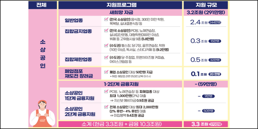 소사 공인을 위한 '새희망자금'은 정부가 보유한 행정 정보로 매출 감소 확인이 가능한 경우 별도 서류 제출 없이 24일 온라인 신청을 통해 25일부터 지급이 시작됩니다.