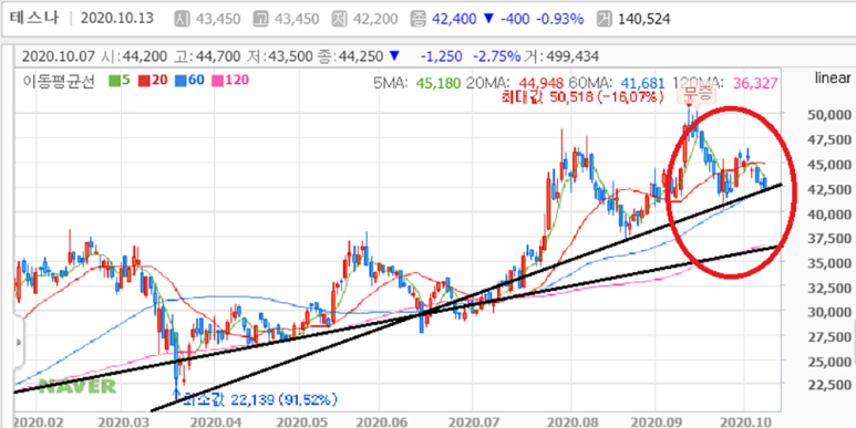-. 최근 단기 추세선에 지지받는 모습으로, 테슬라의 완전자율주행 관련주들에 대한 관심이 집중되어지는 가운데, 실질적으로 펀더멘털 측면의 수혜를 볼 수 있는 테스나 주가에 미리 관심을 가질 필요.