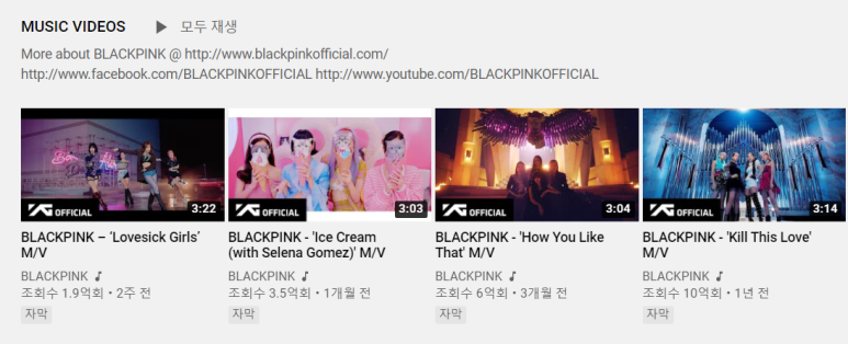 블랙핑크의 억대뷰 영상은 총 22편으로, 특히 '뚜두뚜두' 뮤직비디오의 경우 13억뷰, 'Kill This Love'와 '붐바야'의 경우 10억뷰를 돌파했습니다.