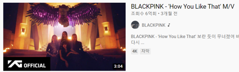 걸그룹 블랙핑크의 '하우 유 라이크 댓' 뮤직비디오가 6억뷰를 돌파했다는 소식입니다.