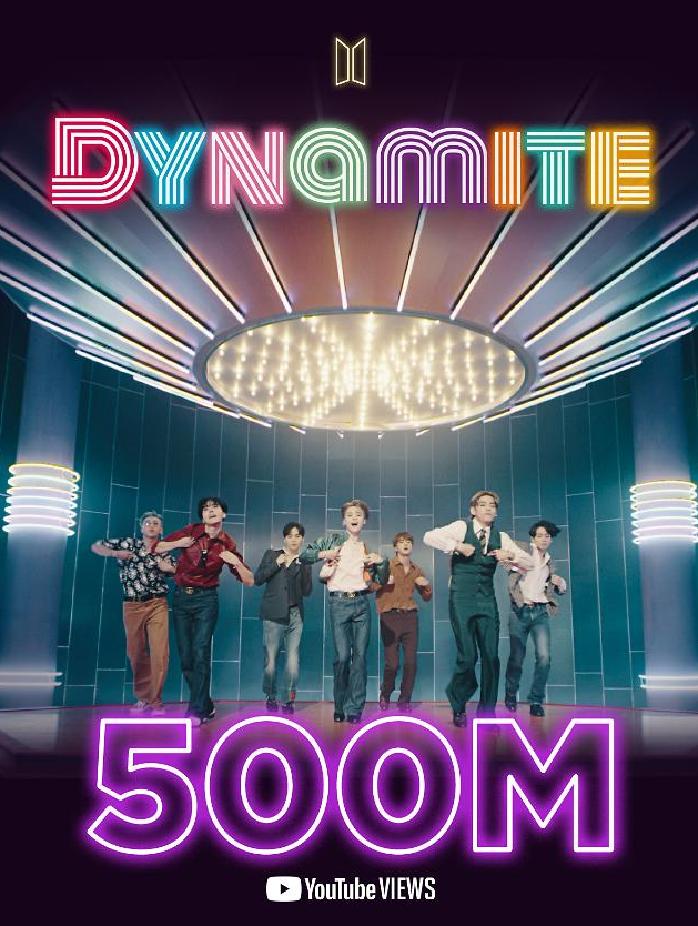 다이너마이트(Dynamite) 뮤직비디오의 경우 올 해 8월 21일 공개된 디지털 싱글로 5억뷰를 돌파한 상황입니다.